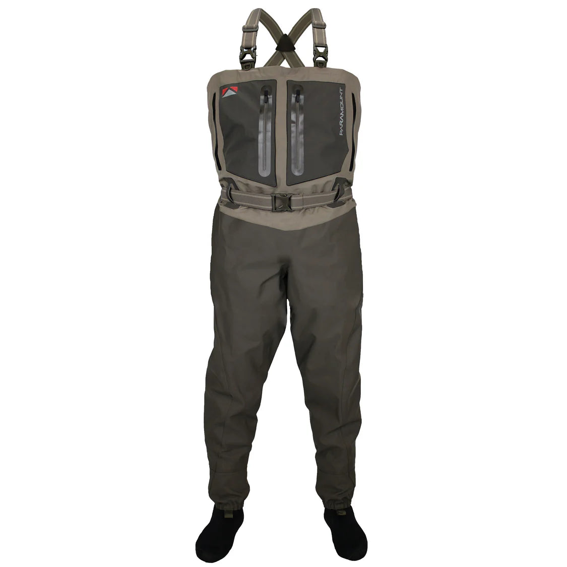 The Meridian is the top-of-the-line breathable chest wader from Paramount Outdoors. This stockingfoot wader offers durable waterproof protection and breathability. Designed with our 6-Ply Nylon full wrap lower legs and a single seam crotch designed to eliminate seam chafe and cut down on leak opportunities. Additionally, the Meridian chest wader has ample storage with 7 total chest pockets including 2 highwater pockets, 2 zippered fly box pockets, and 2 rear zip storage pockets and lastly a flip out security device pocket. If that is not enough the suspenders of the Meridian offer 4 attachment points for quick access to essential fly fishing gear like nippers, hemostats, and tippet. Lastly, this fly fishing wader is complete with 4mm neoprene stockingfoot booties and attached 6-ply nylon gravel guards with lace hooks. If you are looking for quality at an affordable price point you can't go wrong with the Meridian.