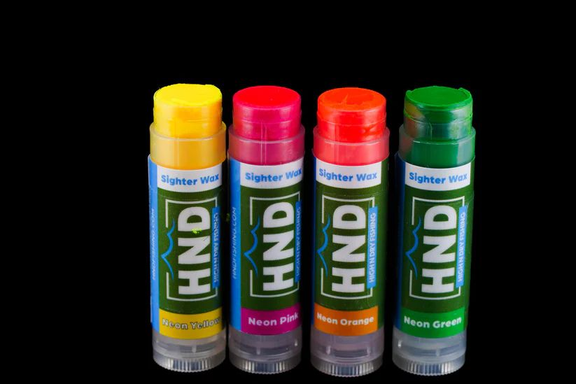 High n Dry's Sighter Wax is designed for on the water use and will allow you to mark your leader and tippet with various colors to make a mobile sighter. You can remove and reapply your sighter wax to adjust for depth and/or to provide you additional visibility to help spot takes while Euro nymphing. To remove or adjust the color on your line, simply wipe it away with a cloth. The Sighter Wax can also be used to add color to hard to see dry flies or strike indicators. Like all our products, the Sighter Wax is 100% environmentally friendly and odorless.